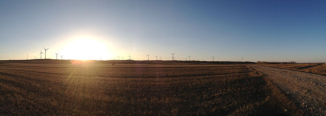 還好第二天風(fēng)和日麗,風(fēng)小了很多,晚霞下的風(fēng)機(jī)特別美麗,不過適合拍攝的光也就一小時(shí)就沒了。